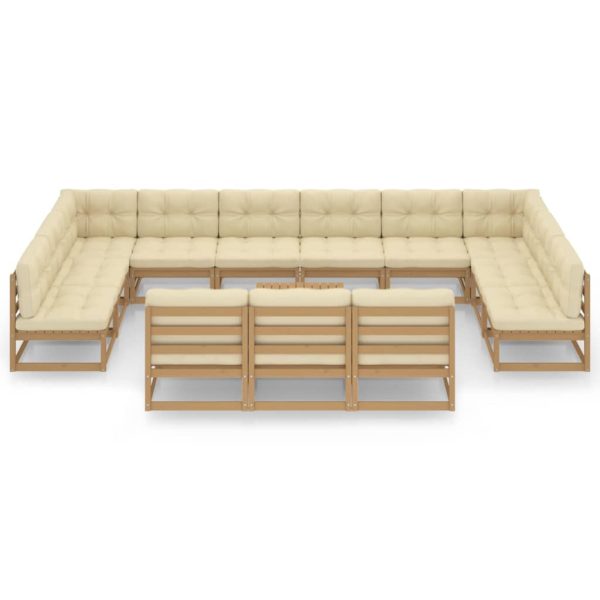 O conjunto de sofás é feito de pinho maciço, tornando-o resistente e estável. Este conjunto possui uma construção sólida e requer pouca manutenção. Os almofadões atribuem um conforto adicional. Este conjunto lounge irá atribuir um toque de charme rústico ao seu espaço habitacional exterior.