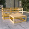 O conjunto lounge para exterior é feito de pinho maciço, tornando-o resistente e estável. Pode combiná-lo com outros segmentos modulares para criar as suas próprias configurações de um conjunto lounge para jardim.