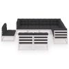 9 pcs conj. lounge de jardim c/ almofadões pinho maciço branco