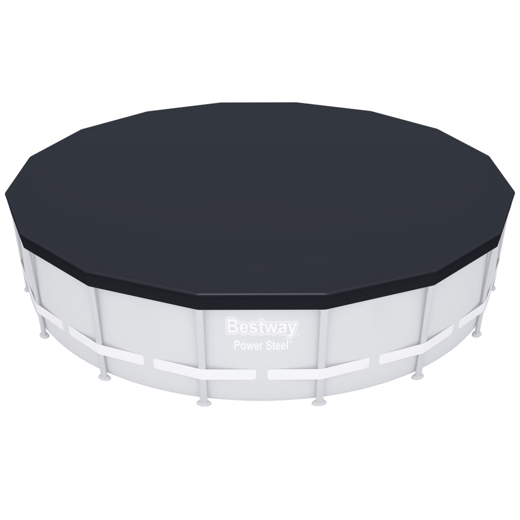 Esta cobertura de piscina possui orifícios de drenagem para impedir que a água se acumule na cobertura. A cobertura de piscina é fácil de instalar, extremamente durável e inclui cordas para prendê-la na piscina. Esta cobertura de segurança para piscina é adequada para as piscinas Power Steel e Power Steel Deluxe Series com um diâmetro de 488 cm, e para as piscinas Hydrium de 460×120 cm.