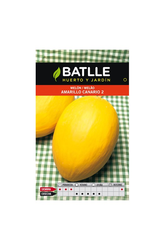 El melón (Cucumis melo) es una planta herbácea de tallos rastreros. Se cultiva por su fruto, una baya grande muy apetecible en verano por su gran contenido de agua y de sabor dulce. La planta posee tallos blandos y pilosos que crecen a ras de suelo. Las flores son amarillas y las hay masculinas, femeninas y hermafroditas. Es una especie extraordinariamente polimorfa tanto en el tipo de fruto como en la pulpa. El color del fruto va de blanco a verde muy oscuro pasando por amarillo, escriturado, manchado (El Piel de Sapo español).La forma del fruto va desde esférica hasta elipsoidal. Su tamaño es dependiente de la variedad y de las condiciones de cultivo. De este modo, hay melones pequeños que pesan alrededor de 400 g y otros muy grandes que pueden pesar hasta 10 Kg, La pulpa es aromática, con textura suave y diferentes colores: amarillo, verde, rosado y tonos intermedios. CONSEJOS GENERALES PARA EL CULTIVO DEL MELON Se siembra de Enero a Mayo según el ciclo deseado y la zona de cultivo. Puede hacerse directamente en el suelo y después aclarar o en bandejas para su posterior trasplante cuando tengan 2-3 hojas. Elegir parcelas bien drenadas y sanas. No repetir el cultivo de melón en la misma parcela hasta pasados 3 años. Se recomienda el riego por goteo. Se gana precocidad y producción con acolchado plástico o tunelillos. Estar atentos a los problemas fitosanitarios, principalmente oidio, araña y fusarium. Recolección a partir de Junio en las zonas más precoces. Conseguiremos más dulzura en los frutos escogiendo suelos profundos que no haya que regar mucho. No tiene excesiva conservación, pero hay tipos como el Tendral que pueden conservarse. MELON AMARILLO CANARIO Ciclo unos 80 días. Variedad bastante precoz. Frutos de color amarillo oro, elípticas y de mediano tamaño o corteza fina y casi lisa. Forma de cultivo: Se siembra de Febrero a Mayo de asiento, a golpes y marco de 150 x 100 cms. Practicados los hoyos se rellenan con mantillo depositando en cada uno de ellos de 5 a 6 semillas, que previamente se habrán puesto unas 10 horas en maceración para facilitar su germinación. Cuando las plantitas alcanzan unos 10 cms. de altura, aclarar, dejando únicamente en cada golpe las 2 más vigorosas. Evitar siempre un exceso de humedad. También puede sembrarse en bandejas para su posterior transplante.
